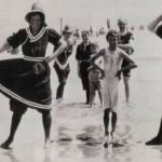The seaside looks for women in the early 20th century included wide slip-pants up to the ankle, on which skirts with petticoats were worn. The upper part instead consisted of a shirt with puffed sleeves up to the elbow.
