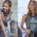 Jessica Alba has lived at least four lives. Between the end of the 90s and the beginning of the new millennium she was a child star, the beautiful little girl who had a dolphin as her best friend in Flipper and, just teenager, she was the heroine of the cult series Dark Angel in which she sported a series of Matrix-like outfits made of long trench coats and leather pants, mini sunglasses and denim with sportswear elements. The early 2000s coincided with international fame, big red carpets and film sagas from Fantastic 4 to Machete, but also many comedies such as Good Luck Chuck or Into the blue, where she was the girl looking for sunken treasures alongside Paul Walker. The real breakthrough role, that from girl next door, has established her as the sex symbol, face and body of Robert Rodriguez's action movies? Definitely that of Nancy Callahan, the stripper-cowboy of the Kadies' in Sin City.
